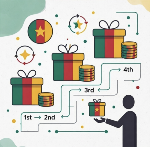 - 1er Dépôt : 100% de bonus jusqu’à environ 65 000 XAF + 30 Tours Gratuits.